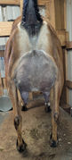 Cedar Creek ME Snow Bunny 2*P, or just Bunny as she's known on her farm Cedar Creek Mini Nubian Farm, is a beautiful high percentage Nubian doe. She is bezoar with heavy roaning, frosted nose and ears, white poll and random white. Most recently, Bunny won Mini Nubian Senior Doe Reserved Grand Champion at the 2023 Memorial Day Classic put on by the Texas Mini Milkers. Also in 2023, Bunny earned her milk star on a one-day test earning 76 points by producing 6.7 pounds of milk at 4.8% butterfat 51 days after kidding with a single! She has a beautiful udder, high escutcheon, strong medial attachments, and straight teats.