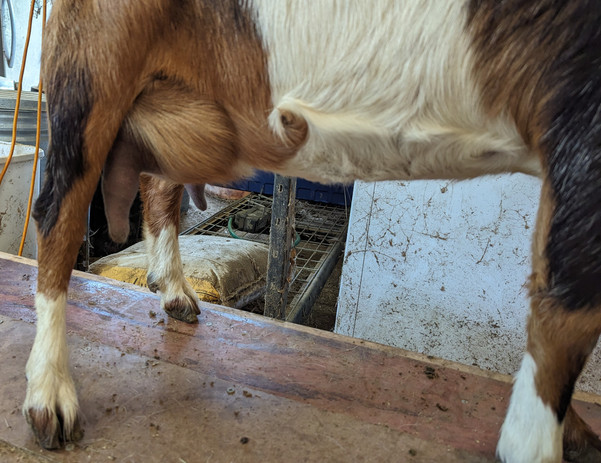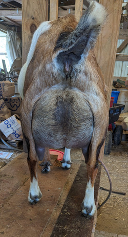 Berlynn was bred by Kingdom Acres, and was born in 2020. She is the result of an accidental line breeding between her dam and her dam's sire. However, it's hard to go wrong linebreeding Green Gables stock! Due to this, she's an extremely petite doe standing just over 19 inches in November 2021 at nearly a year old. The mini nubian breed standard minimum is 23 inches, so we will be utilizing her to bring down size on some of our larger, less refined goats. She joined our herd in October 2021 along with her full sister, Pearl, and half sisters Bailey and Selah.
